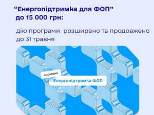 Уряд ухвалив рішення розширити програму «Енергопідтримка ФОП» та продовжити термін подання заяв на отримання одноразової допомоги ще на два місяці – до 31 травня 2026 року.